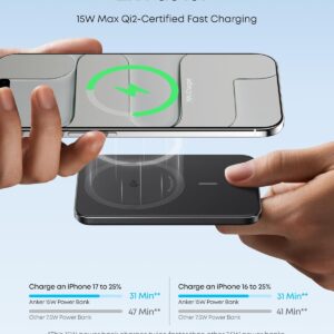 - 15W MagSafe-Compatible Charging: Get up to 15W max of Qi2-certified fast wireless charging—enough to power an iPhone 16 Pro to 25% in just 42 minutes. (Note: Data based on internal lab testing; actual performance may vary.)